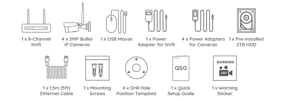 3K/5MP WiFi NVR beveiligingsset. Bij deze set krijg je 4 WiFi-camera's (FI9925W) en een NVR. Je kunt de set uitbreiden tot 8 camera's en je kunt daarvoor, naast de FI9925W, kiezen uit de meeste Foscam camera's, zowel WiFi als PoE. Bijvoorbeeld de Foscam V5(E)P of de V8(E)P, maar je kunt ook dome-camera's zoals de T5EP of T8EP toevoegen. Wil je meer informatie over de mogelijkheden, neem dan contact op met onze klantenservice.